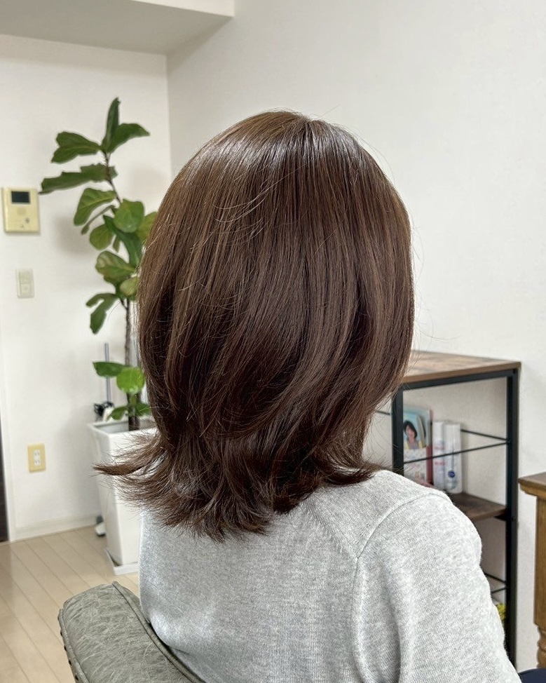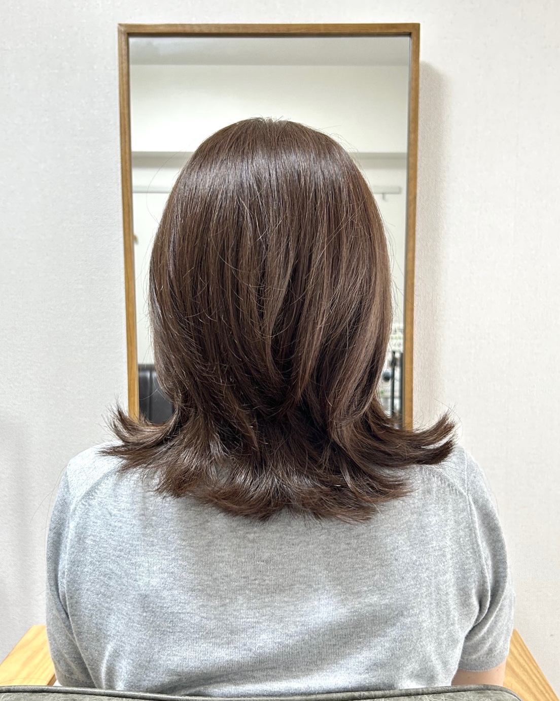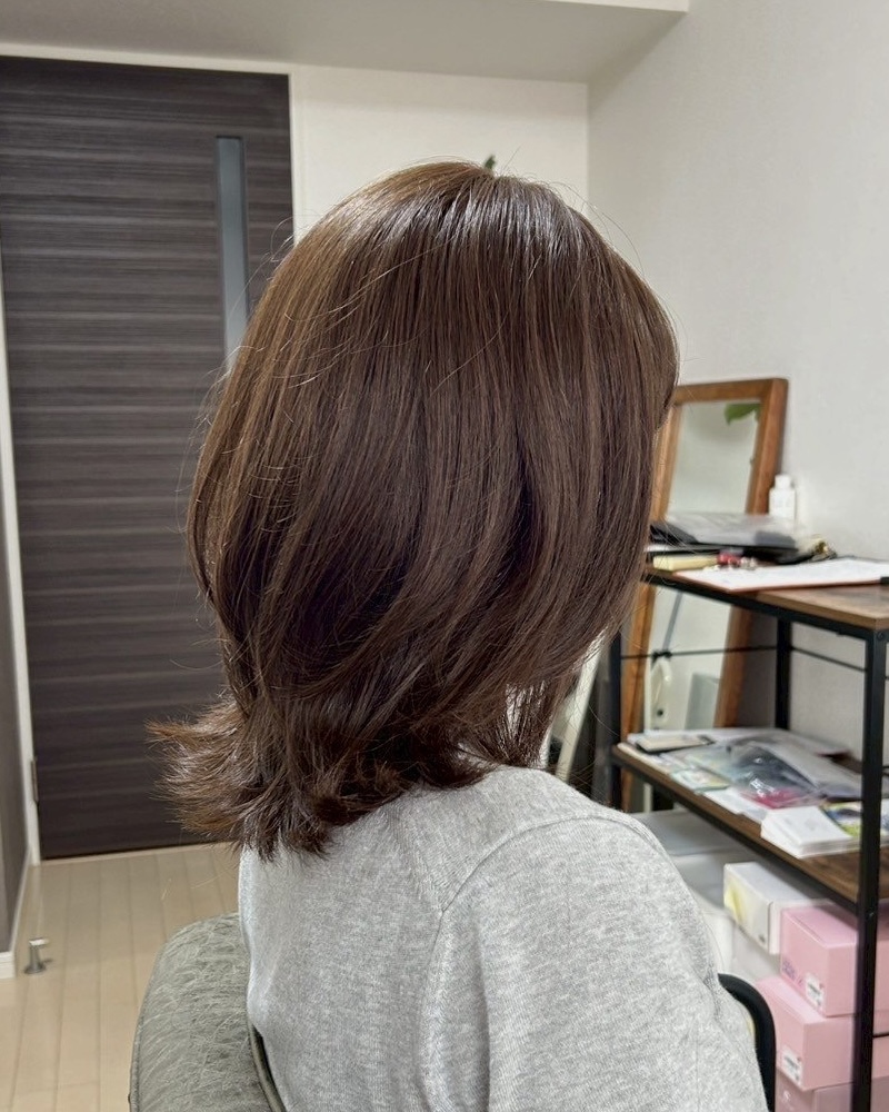 さらに、もともとゆるやかなカールが入っているため、カット後は軽く巻いたようなやわらかい雰囲気に仕上がりました。