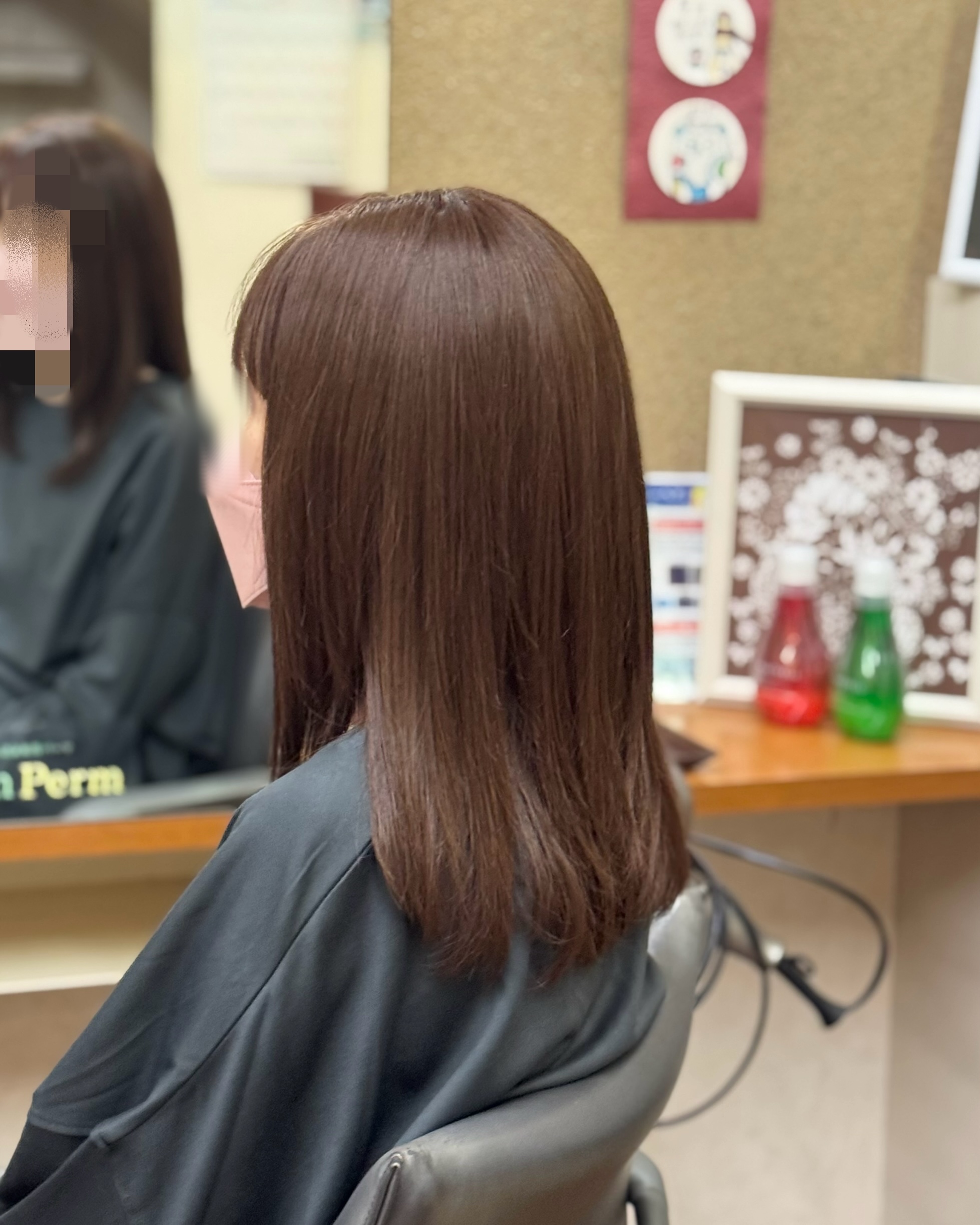 当日は、「肩につくくらいのボブ」をイメージしてカウンセリングを進めていきましたが、カウンセリングを進めていくうちに「せっかくだからロングヘアも楽しみたい」というお話になり、今回はロングスタイルにお作りしました✨😊